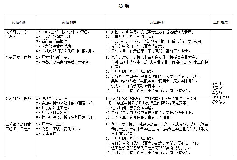 2)專業(yè)要(yào)求:摩擦學、滾動軸承、金(jīn)屬材料及先進制(zhì)造相(xiàng)關專業(yè);