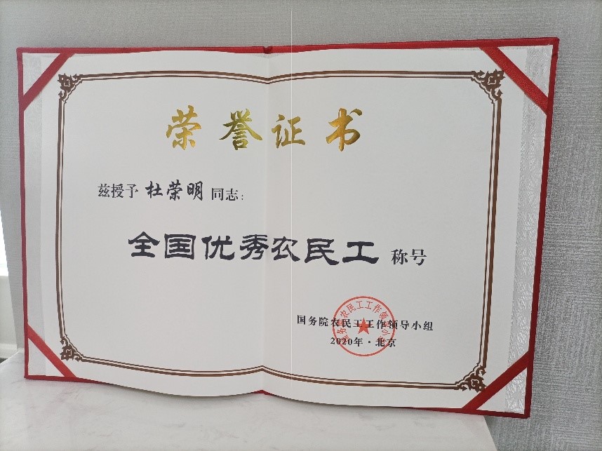 2021年(nián)1月(yuè)6日(rì),國(guó)務院農(nóng)民(mín)工(gōng)工(gōng)作(zuò)領導小↓(xiǎo)組召開(kāi)“全國(guó)優秀農(nóng)民(mín)工(gōng)和(hé)農(nóng)民(mín)工(gōng)工(gōng)作(zuò) 先進集體(tǐ)”表彰大(dà)會(huì),對(duì)994名全國(guó)優秀農(nóng)民(mín)工(gōng)和(hé)100☆個(gè)農(nóng)民(mín)工(gōng)工(gōng)作(zuò)先進集體(tǐ)進行(xíng)了(le)表彰。江蘇省共有(yǒu)79人(rén)獲得(de)“全國(guó)優秀農(n∏óng)民(mín)工(gōng)”稱号,我公司高(gāo)端工(gōng)廠(chǎng)杜榮明(míng)總監名列其中。